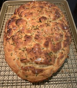 Preheat the oven to 450*. While the oven is preheating, drizzle the last TBSP of oil over the dough and sprinkle with sea salt flakes (and additional chopped rosemary if you like). Allow to rest until the oven is at temperature.